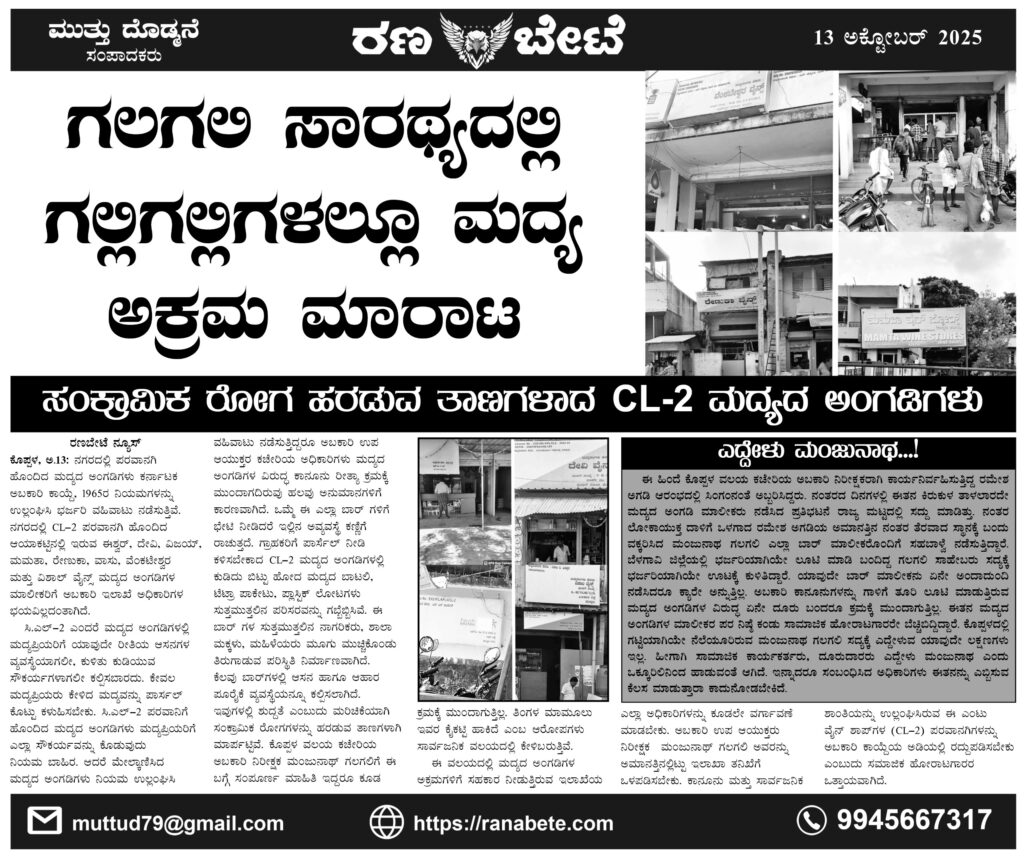 ಕಳ್ಳ ವೈದ್ಯನ ಅನಧಿಕೃತ ವೃತ್ತಿ: ಕೊಪ್ಪಳ DHO ರವರ ‘ನಿಷ್ಕ್ರಿಯತೆ’ ಜೀವಕ್ಕೆ ಕುತ್ತು! ಕೆಪಿಎಂಇ ಕಾಯ್ದೆಯು ಈ ‘ಪ್ರಮಾದ’ಕ್ಕೆ ಸಮ್ಮತಿಸುವುದೇ? ರಣಬೇಟೆ ವೆಬ್ ನ್ಯೂಸ್ ಕೊಪ್ಪಳ ಅ:31 ಆರ್ಥಿಕ ಲಾಭಾಂಶದ ಉದ್ದೇಶದಿಂದ ಅಮಾಯಕ ಸಾಮಾನ್ಯ ಜನರ ಜೀವದ ಮೇಲೆ ದುರಾಚಾರ ನಡೆಸುತ್ತಿದ್ದ ಅರ್ಹತಾಹೀನ ವ್ಯಕ್ತಿಯೋರ್ವನ ಘೋರ ಕೃತ್ಯವು ಕೊಪ್ಪಳ ಜಿಲ್ಲೆಯಲ್ಲಿ ಬಹಿರಂಗಕ್ಕೆ ಬಂದಿದೆ. ಈ ಕಪಟ ವೈದ್ಯನ ಹೆಸರು ಬಸವರಾಜ ಕಟಗಿಹಳ್ಳಿ. ಕೊಪ್ಪಳ ಜಿಲ್ಲಾ ಆರೋಗ್ಯ ಮತ್ತು ಕುಟುಂಬ ಕಲ್ಯಾಣಾಧಿಕಾರಿ ಡಾ. ಲಿಂಗರಾಜು ರವರ ಕಟ್ಟುನಿಟ್ಟಿನ ನಿರ್ವಹಣೆಯ ಜವಾಬ್ದಾರಿಯ […]