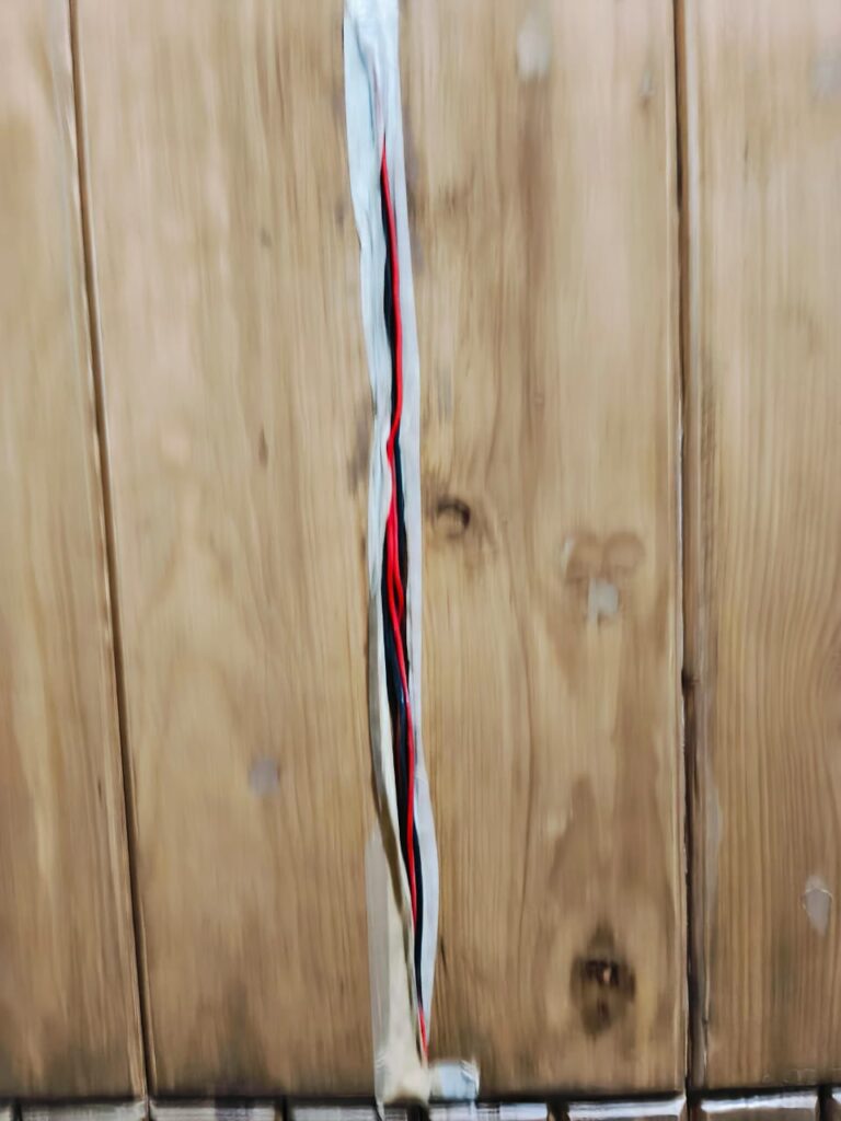 ಹೊಸದಾಗಿ ಮರದ ಪ್ಯಾನೆಲಿಂಗ್ ಹಾಕಿಸಿ ಕಚೇರಿ ಗೋಡೆಗೆ ಒಂದು ‘ಕಾರ್ಪೊರೇಟ್ ಲುಕ್’ ನೀಡಲಾಗಿತ್ತು. ಆದರೆ, ಆ ಸೌಂದರ್ಯ ಶಾಶ್ವತವಾಗಿರಲಿಲ್ಲ. ಕಚೇರಿಯೊಳಗೆ ವೈರಿಂಗ್ಗೆ ಸಂಬಂಧಿಸಿದ ಯಾವುದೋ ತುರ್ತು “ಶಸ್ತ್ರಚಿಕಿತ್ಸೆ” ನಡೆದಿರಬೇಕು. ಈ ಶಸ್ತ್ರಚಿಕಿತ್ಸೆಗೆ ನಮ್ಮ ಕುಶಲಕರ್ಮಿಗಳು ಆರಿಸಿಕೊಂಡ ದಾರಿ ಎಂದರೆ- ಸುಂದರ ಮರದ ಫಲಕಗಳನ್ನೇ ಸೀಳಿ, ಸೀಳು ಜಾಗದಲ್ಲಿ ವೈರಿಂಗ್ ತಂತಿಯನ್ನು ತುರುಕಿ, ನಂತರ ಟೇಪ್ ಹಚ್ಚಿ “ಗಾಯ” ಮುಚ್ಚುವ ಯತ್ನ! ಚಿತ್ರದಲ್ಲಿ ಕಾಣುವಂತೆ ,ಫಲಕದ ನಡುವಿನ ಸೀಳಿನಲ್ಲಿ ಕೆಂಪು ಮತ್ತು ಕಪ್ಪು ತಂತಿಗಳು ತಮ್ಮ ಅಸ್ತಿತ್ವವನ್ನು ಅಸಹಾಯಕವಾಗಿ ತೋರಿಸುತ್ತಿವೆ. ಈ ‘ವೈರಿಂಗ್ ವೈಭವ’ ನೋಡಿದರೆ, “ಮರದಿಂದ ಪ್ಯಾನೆಲಿಂಗ್ ಮಾಡಿಸಿದ್ದೇವೆ, ವೈರಿಂಗ್ಗೆ ಗೋಡೆ ಒಡೆಯುವ ಸಂಪ್ರದಾಯ ಮುಂದುವರಿಸಿದ್ದೇವೆ” ಎಂದು ಪಂಚಾಯಿತಿಯವರು ಸಾರ್ವಜನಿಕರಿಗೆ ಒಂದು ಸಂದೇಶ ನೀಡಿದಂತಿದೆ.